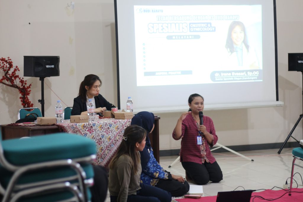 Selain itu dr. Anna bersama Mbak Shinta turut memberikan edukasi tambahan terkait pola makan seimbang selama kehamilan, manajemen keluhan umum pada ibu hamil, serta pentingnya dukungan keluarga dalam menjaga kesehatan ibu dan bayi. Sesi tanya jawab menjadi momen yang paling interaktif, di mana para peserta aktif menyampaikan pertanyaan dan berbagi pengalaman mereka selama masa kehamilan.